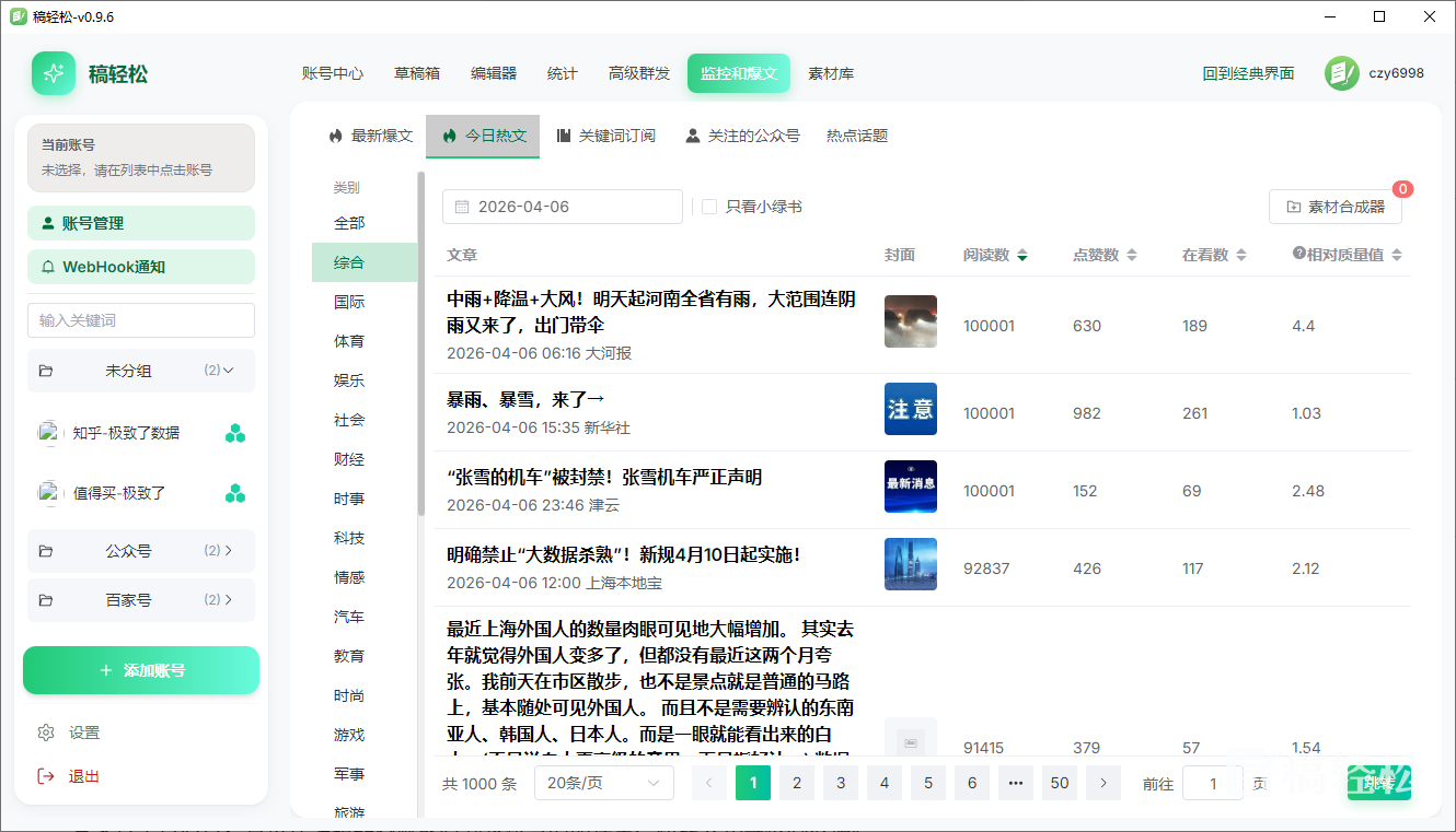 工具不在多,够用就好。对新手来说,稿轻松编辑器集排版、爆文、检测、同步、数据于一体且完全免费,一个工具打通全流程,强烈建议从它入手。排版不够专业时,再搭配小墨鹰、135等专项工具;选题枯竭时,打开今日热榜;内容需要安全检测时,用句无忧扫一遍。