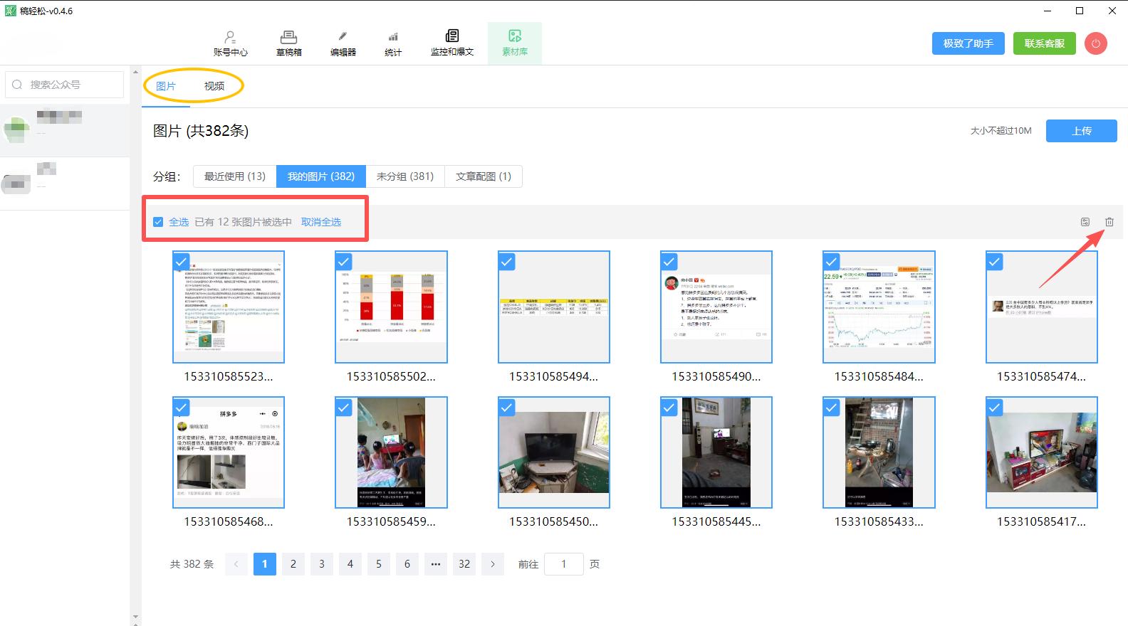 如何批量删除素材库的图片和视频|稿轻松编辑器