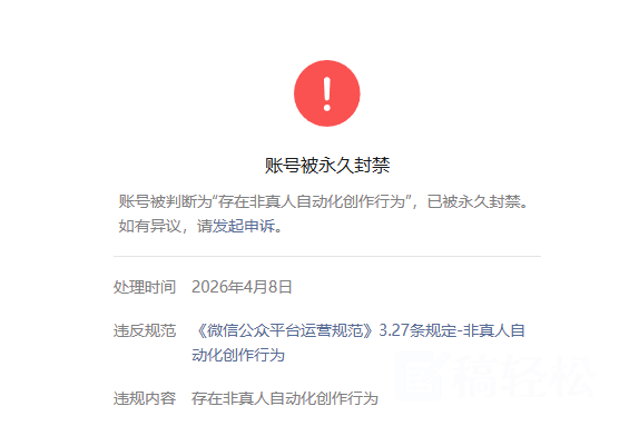 新规不仅关注你是否使用了AI工具,更重点打击的是“非真人”的自动化操作痕迹。即使部分创作者声称仅使用了第三方排版工具导入,或发布的是AI技术教程,若内容特征符合“非真人自动化”标准,仍会触发系统的违规判定。轻则被限制流量或删除文章,重则面临功能限制甚至永久封禁。
